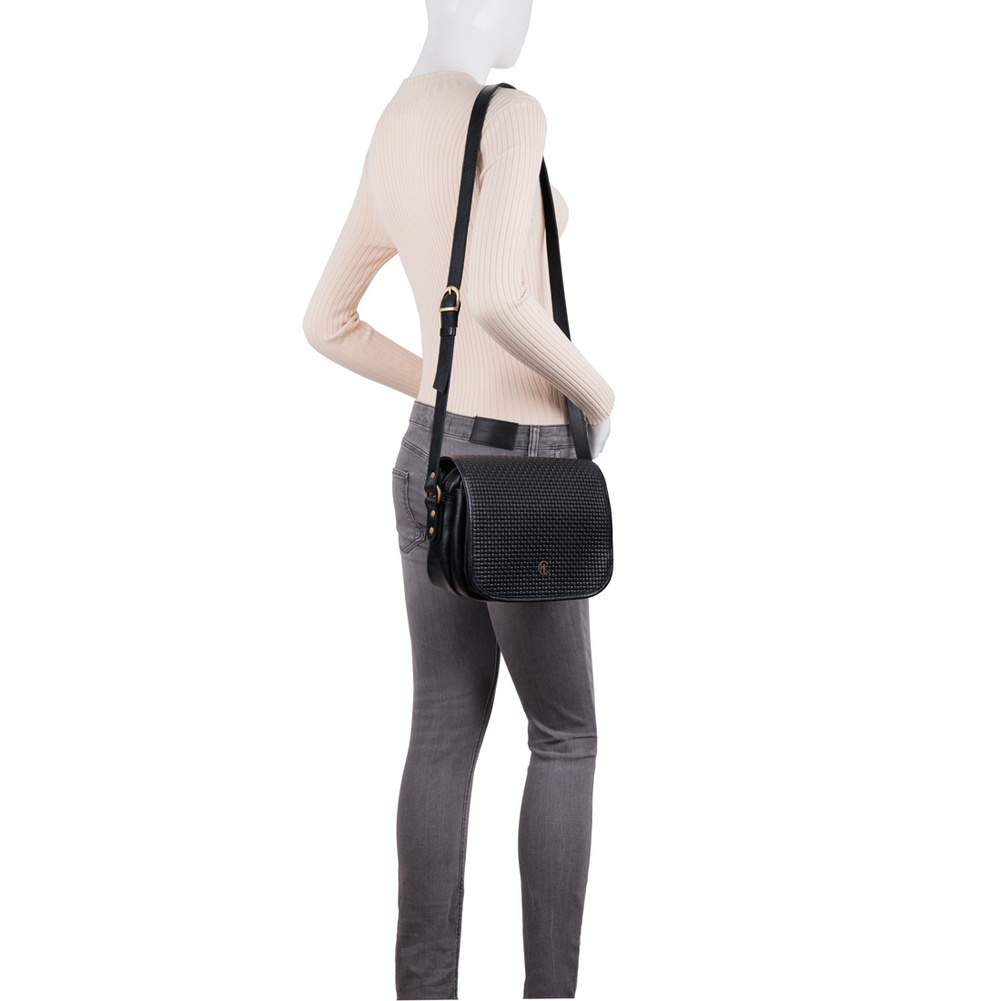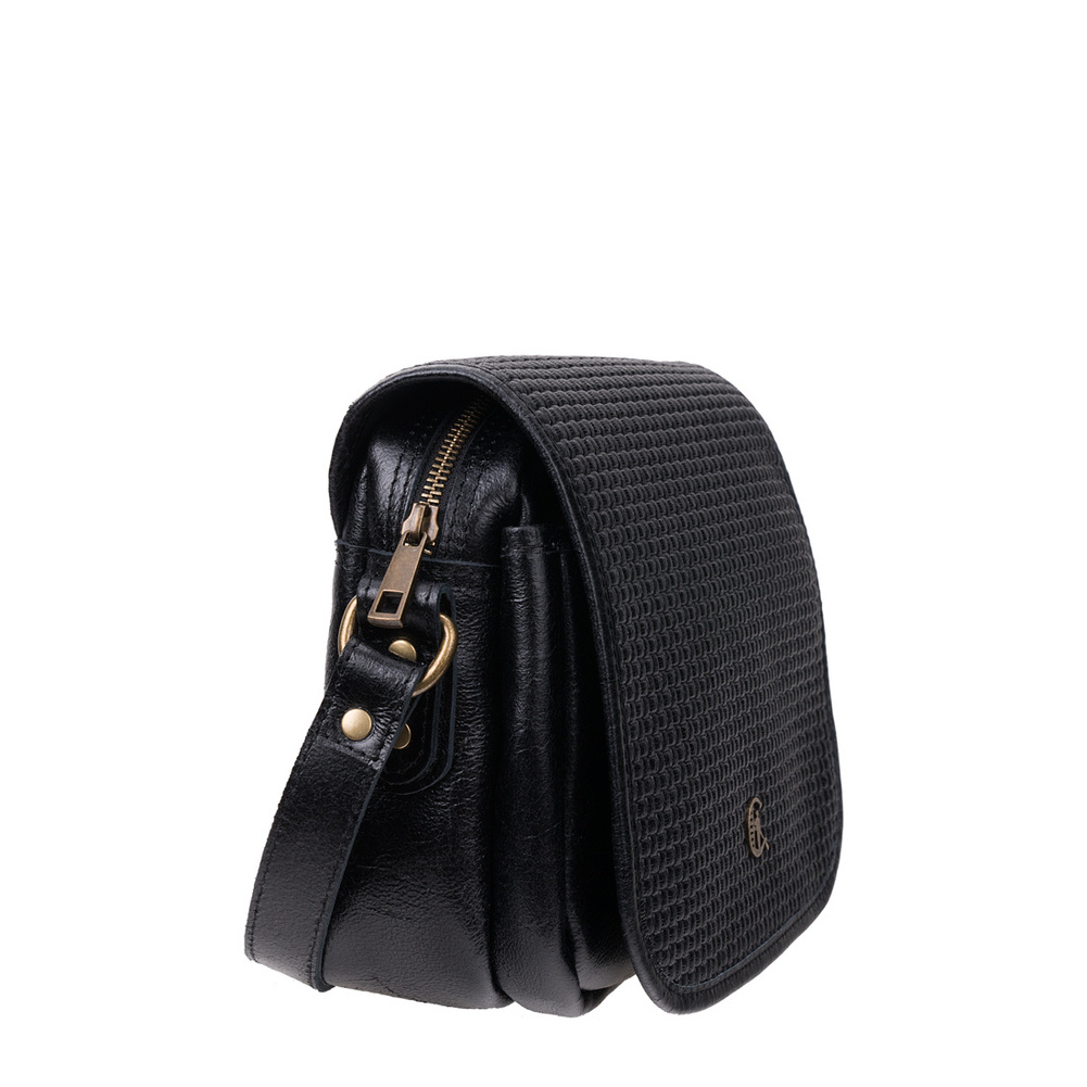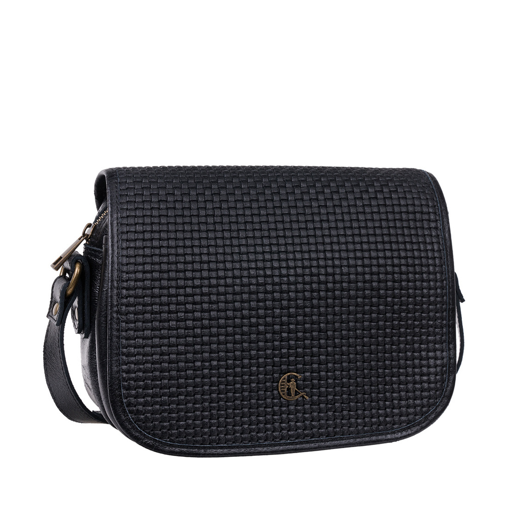 Charakterystyczna klapka z tłoczeniem plecionki to detal, który przyciąga wzrok i nadaje torebce niepowtarzalnego charakteru. Wykonana z naturalnej skóry o wyjątkowej fakturze, doskonale wpisuje się w trendy, a jednocześnie wyróżnia się klasycznym stylem.