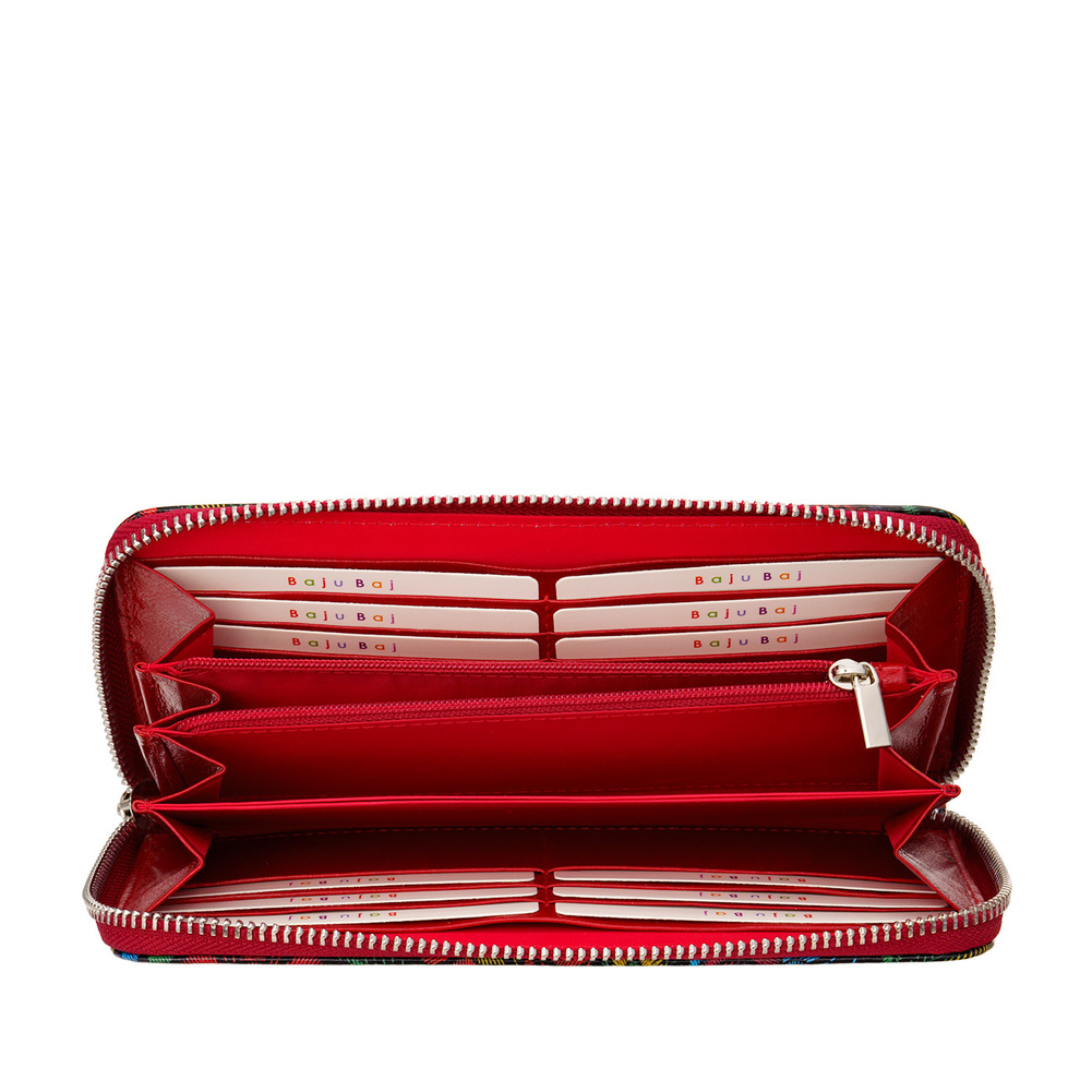 Portfel zapinany jest na solidny zamek błyskawiczny, który chroni jego zawartość, zapewniając bezpieczeństwo i wygodę użytkowania. W środku znajdziesz: