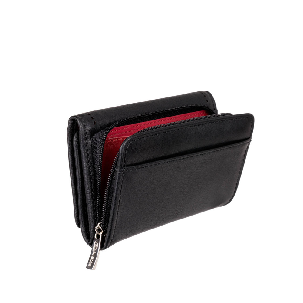 • Kieszeń na monety z tyłu portfela – zapinana na suwak, idealna do przechowywania drobnych.