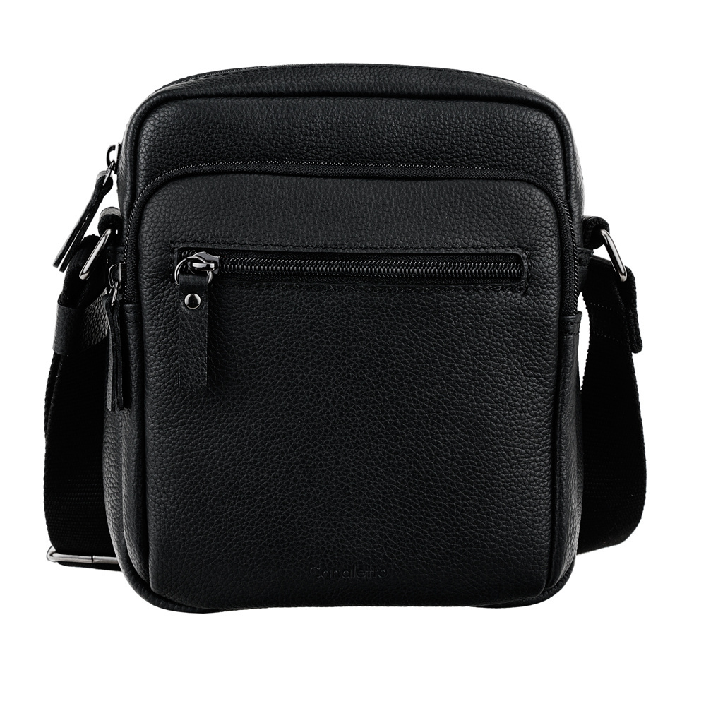 Męska listonoszka Canaletto – styl i funkcjonalność w czarnej skórze groszkowanej