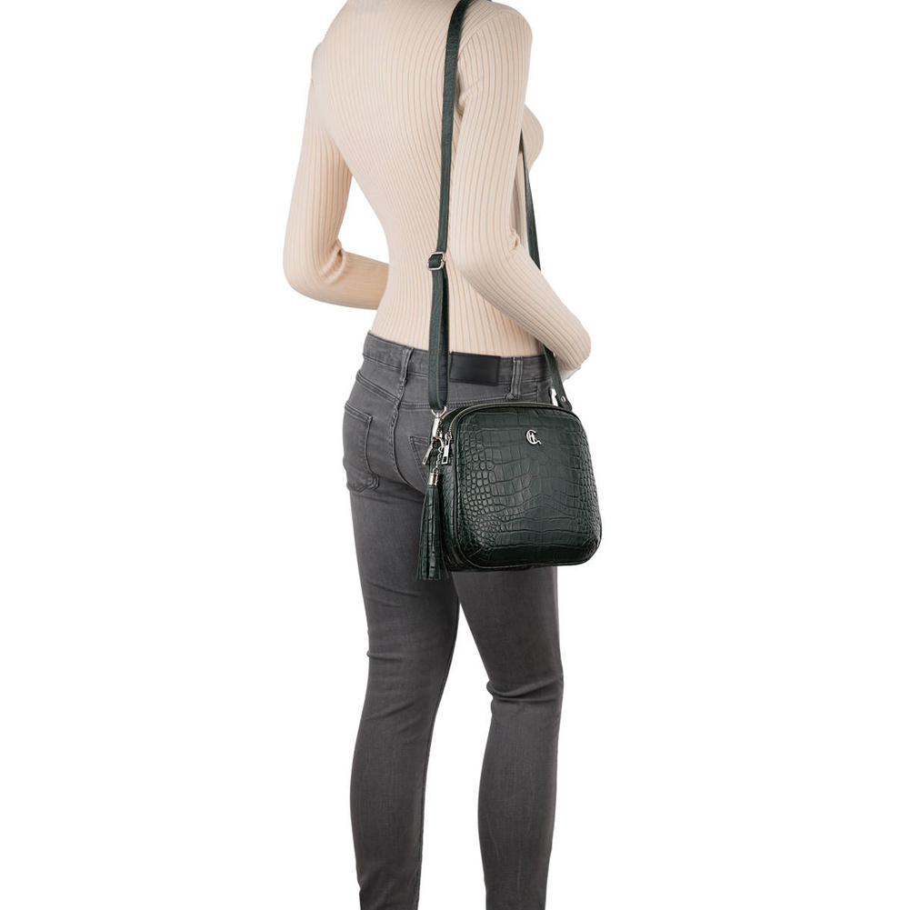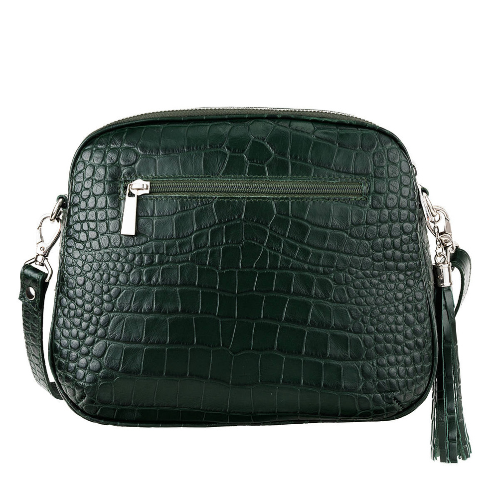 Wykonana z wysokiej jakości naturalnej skóry licowej tłoczonej na wzór krokodyla, torebka przyciąga wzrok i podkreśla styl właścicielki. Struktura skóry krokodyla nadaje jej ekskluzywny wygląd oraz sprawia, że staje się ponadczasowym dodatkiem.