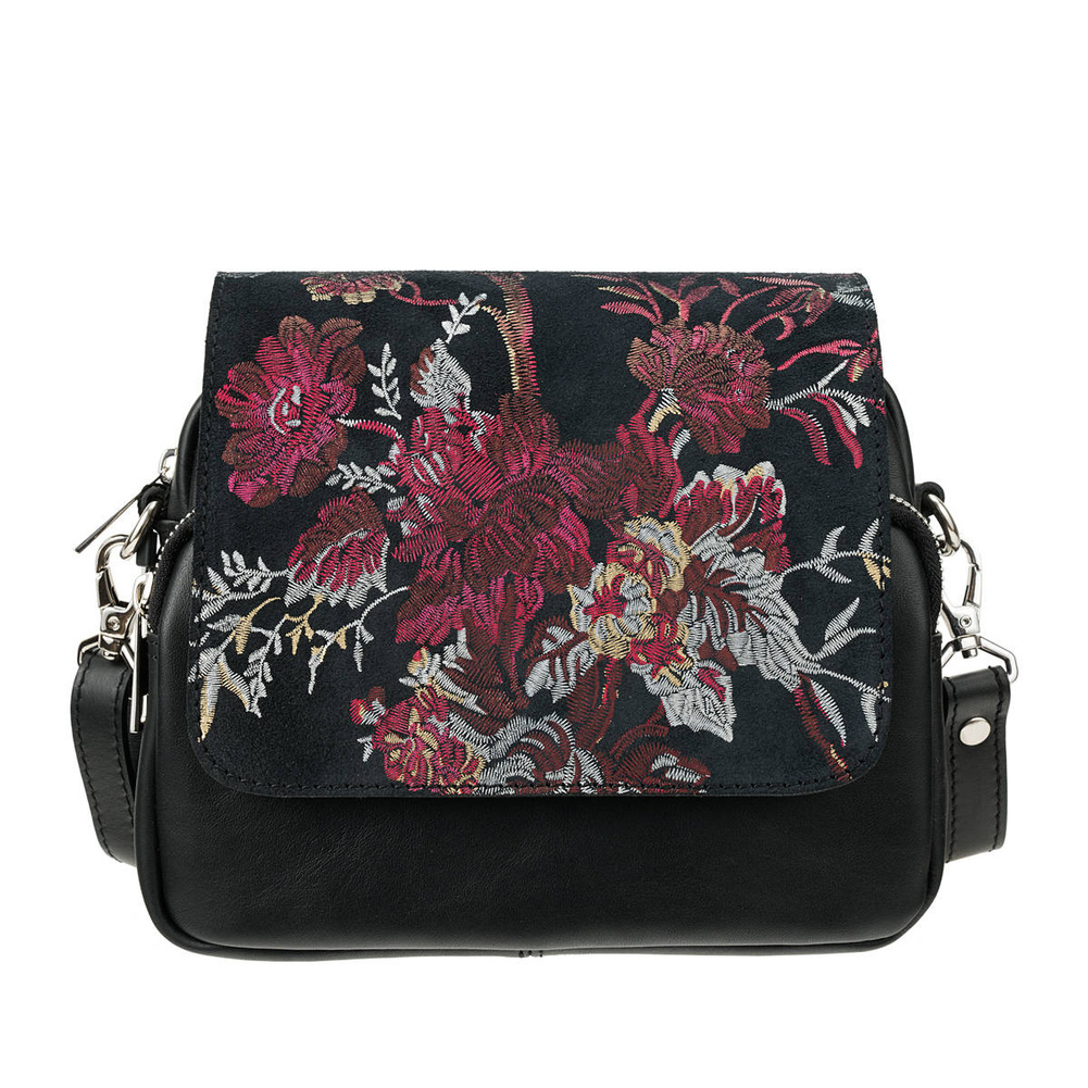 Kompaktowa i stylowa listonoszka Canaletto z nubukową klapką o kwiatowym wzorze – idealna do użytku na co dzień