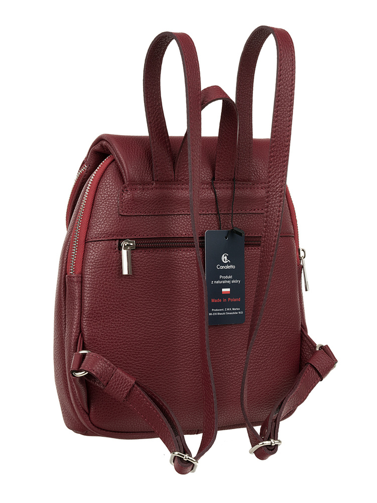 • Stylowy plecak Canaletto wykonany z naturalnej groszkowanej skóry licowej. Jedna komora na suwak, ozdobna klapka i regulowane paski. Polski produkt najwyższej jakości!