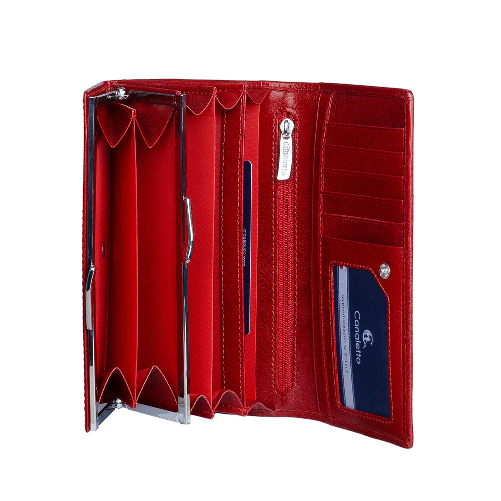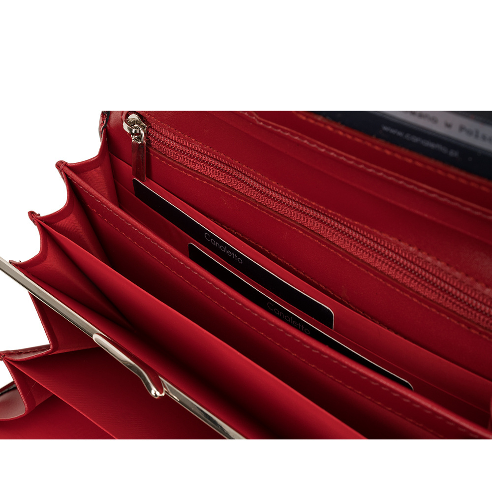 Duży portfel damski Canaletto z czerwonej skóry licowej garbowanej roślinnie z RFID – elegancja i bezpieczeństwo