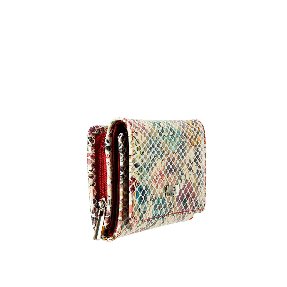 • Kolorowy portfel damski BajuBaj wykonany z naturalnej skóry licowej. Około 10 przegródek na karty, kieszeń na monety, okienko na zdjęcie oraz przegroda na banknoty. Polska produkcja i staranne wykonanie.
