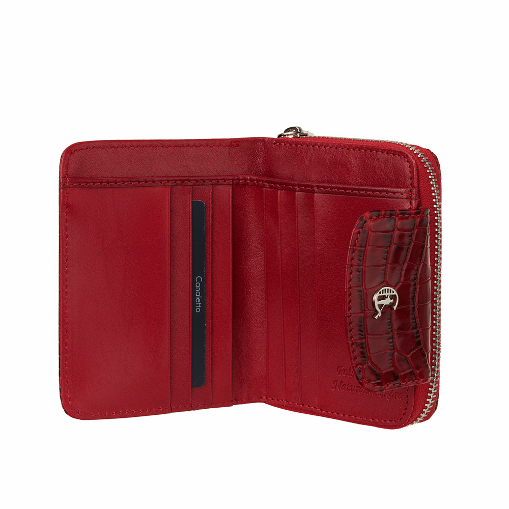 Elegancki portfel damski Canaletto z bordowej skóry o wzorze krokodyla – luksus i funkcjonalność w jednym!