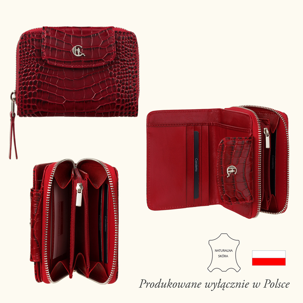 Poznaj wyjątkowy portfel damski Canaletto z naturalnej skóry licowej w kolorze bordowym, zdobiony subtelnym wzorem krokodyla. To perfekcyjne połączenie klasycznego stylu, funkcjonalności i luksusowego designu, które spełni oczekiwania nawet najbardziej wymagających użytkowniczek. Ten model to nie tylko praktyczny dodatek, ale również elegancki akcent każdej stylizacji.