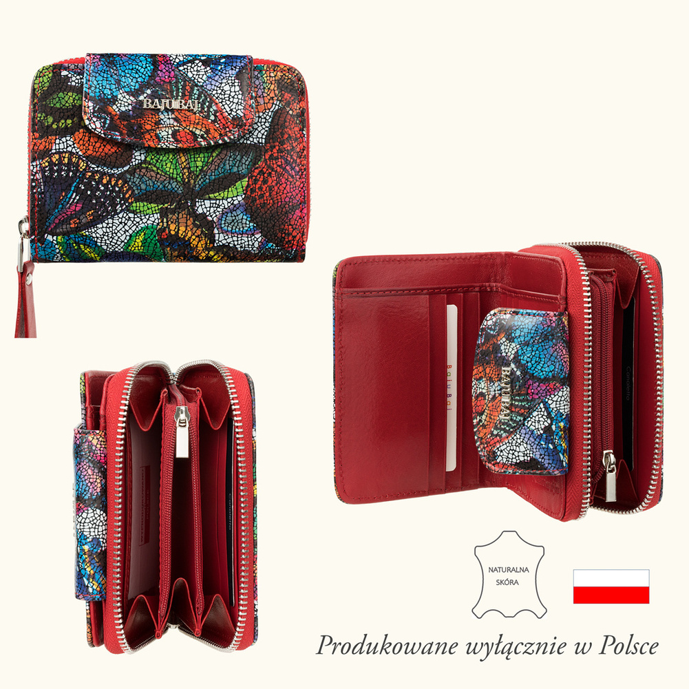 • Damski portfel BajuBaj z naturalnej skóry – elegancki design, 8 miejsc na karty, kieszeń na bilon i banknoty. Praktyczny, trwały i stylowy dodatek, który podkreśli Twój wyjątkowy charakter każdego dnia!