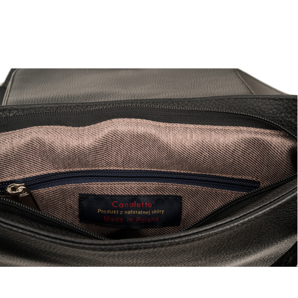• Torebka Canaletto wykonana z najwyższej jakości naturalnej skóry. Kieszeń w klapce, stylowa skórzana zawieszka, regulowany pasek i eleganckie detale. Polski produkt najwyższej jakości!
