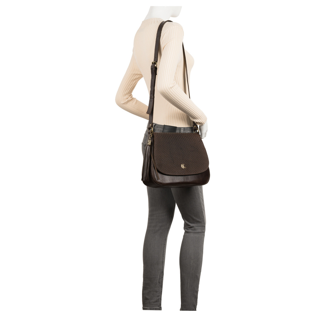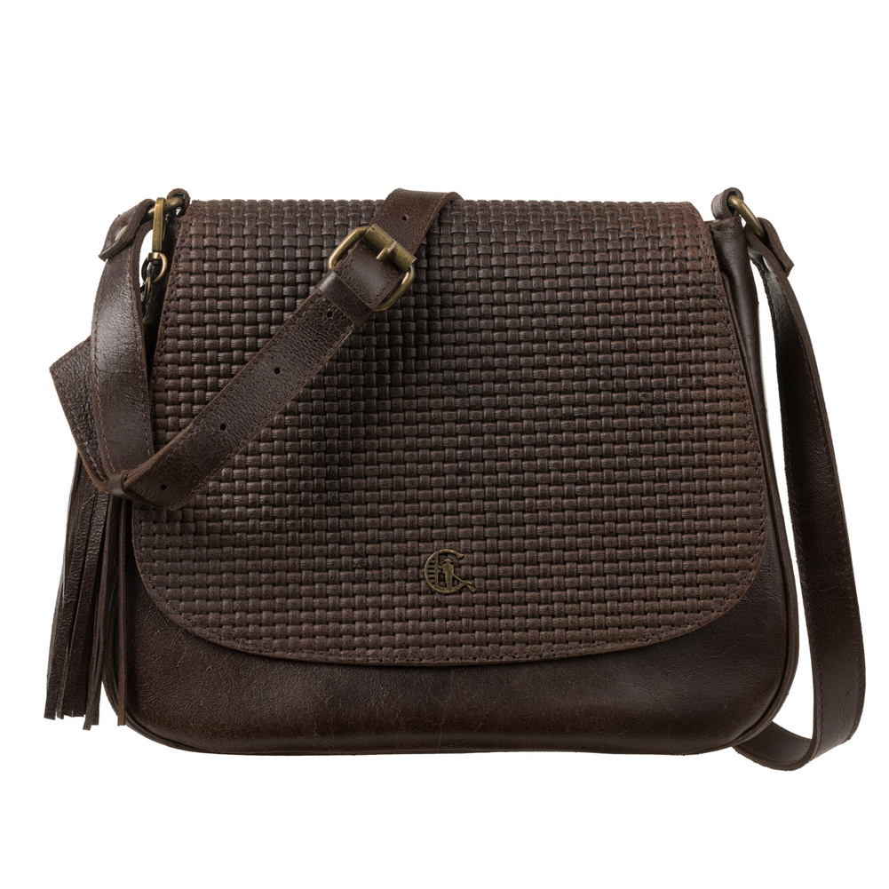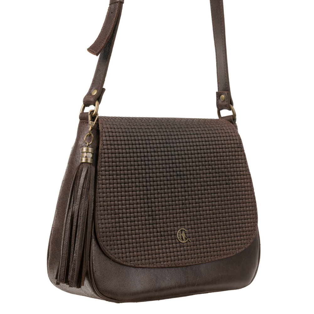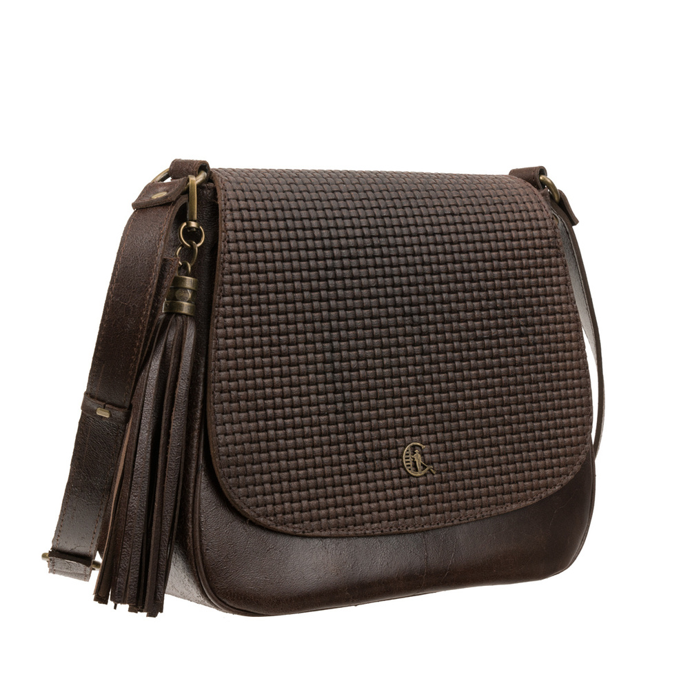 Charakterystyczna klapka z subtelnym tłoczeniem plecionki nadaje torebce wyjątkowego uroku i elegancji. Detale wykończone w kolorze starego złota podkreślają jej szykowny charakter, a ozdobny frędzel dodaje jej wyrafinowanego stylu, idealnie uzupełniając klasyczny design.