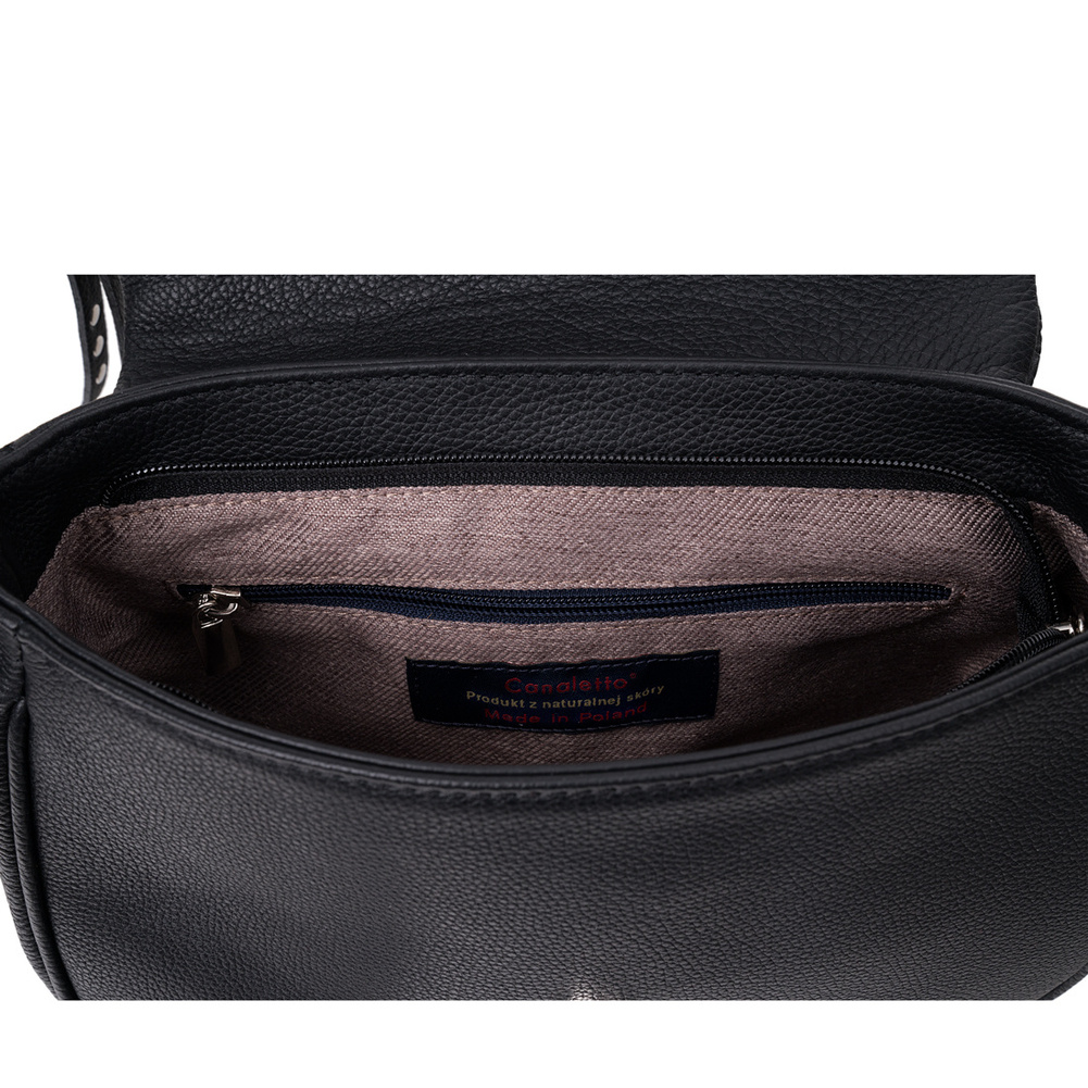 • Torebka Canaletto wykonana z naturalnej skóry licowej z klapką z tłoczeniem plecionki.