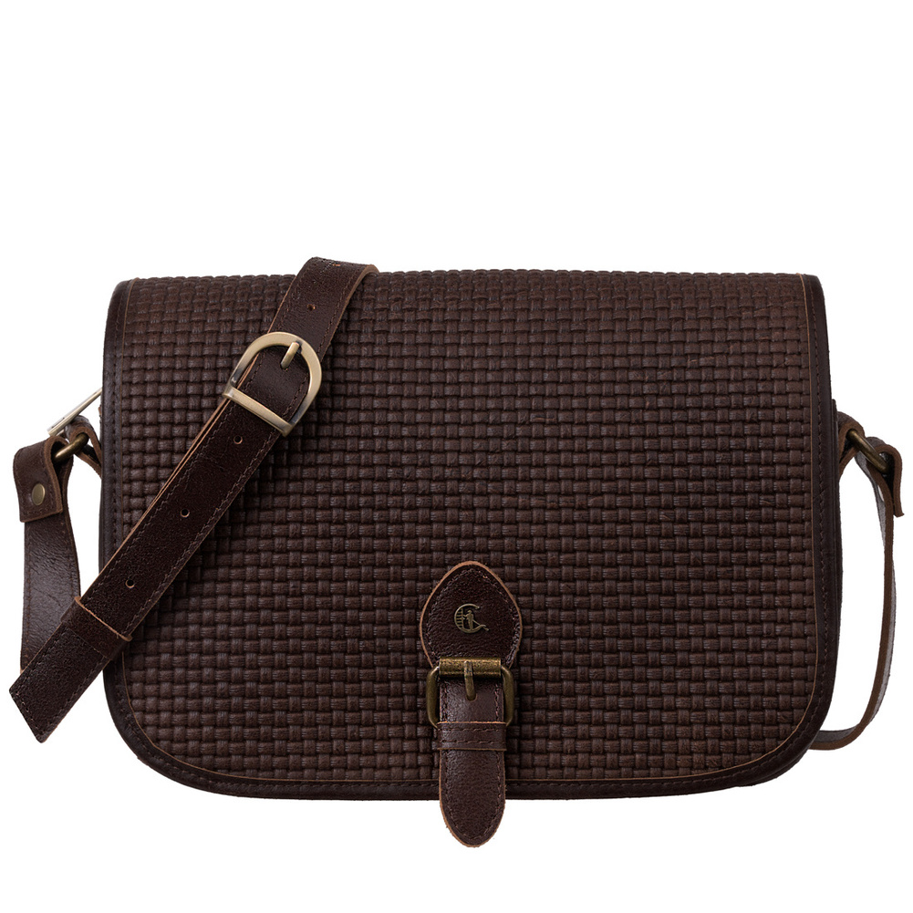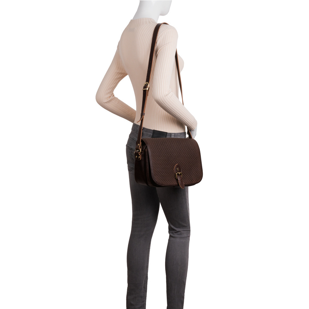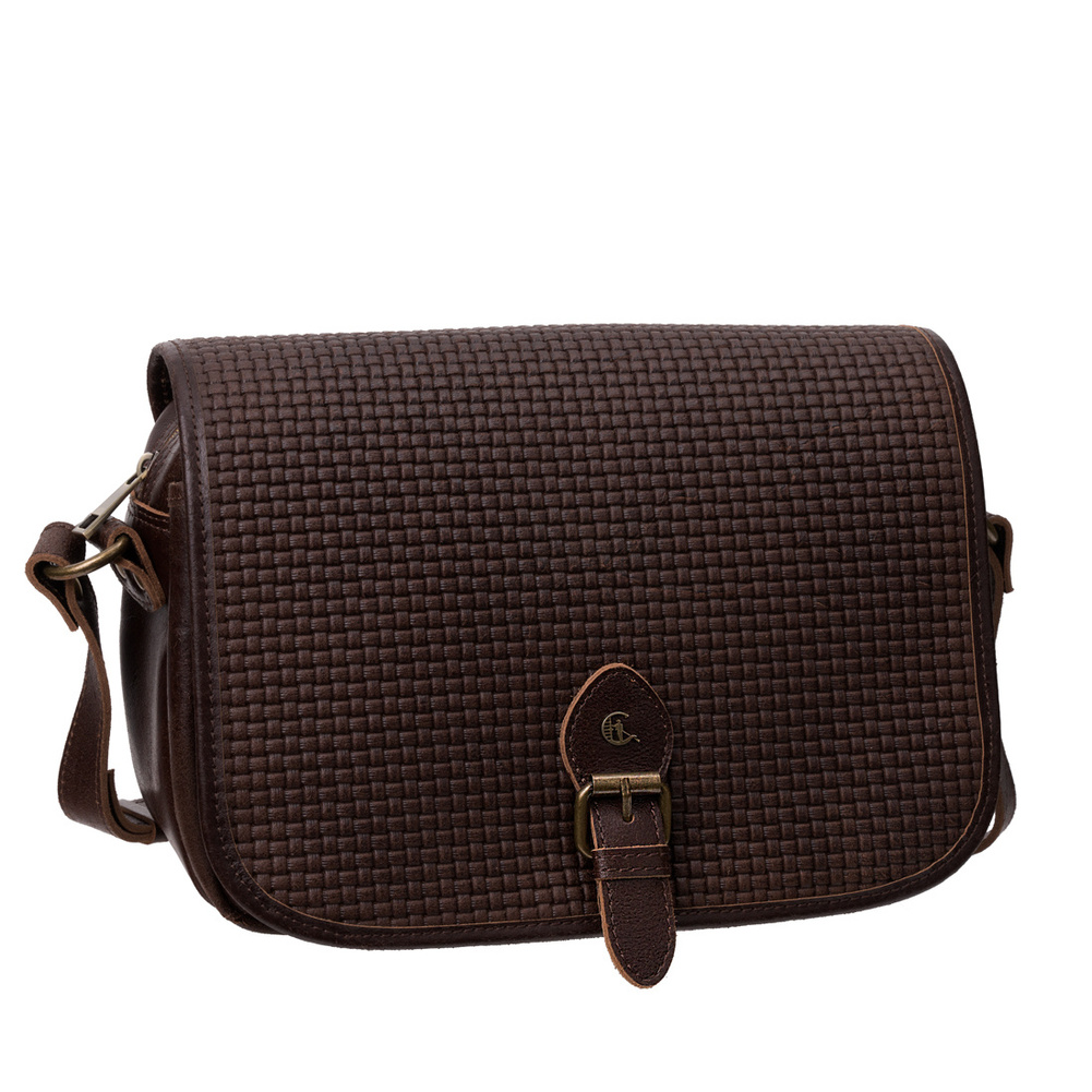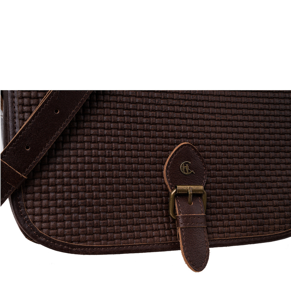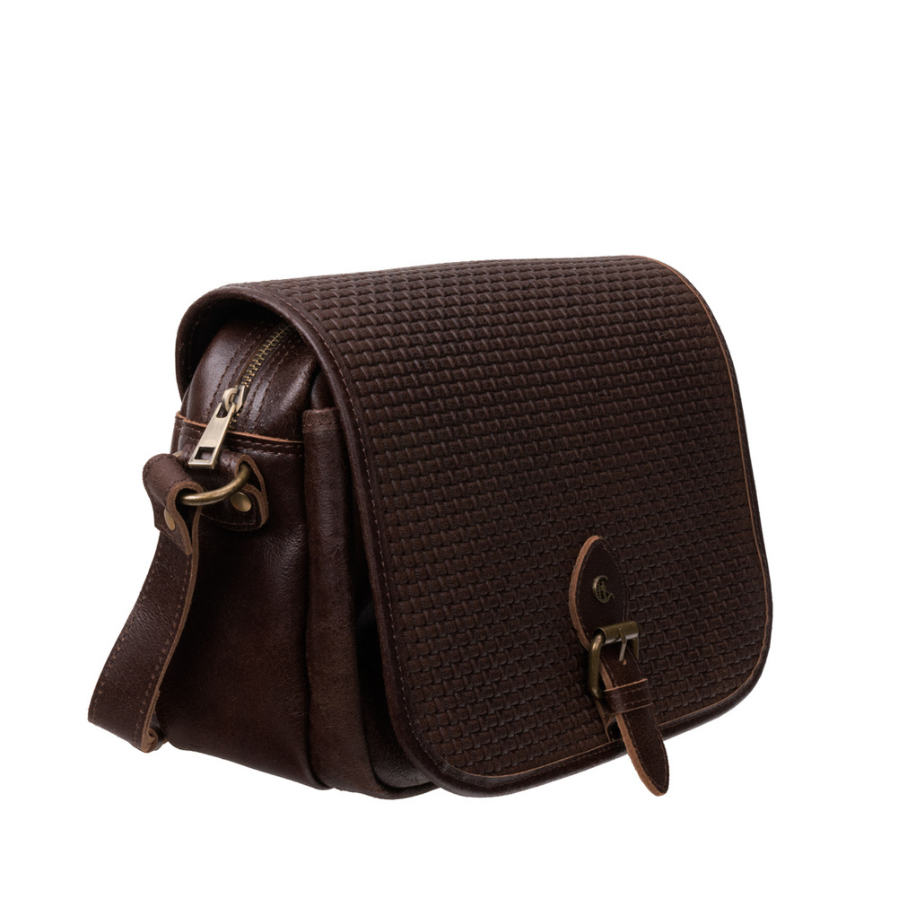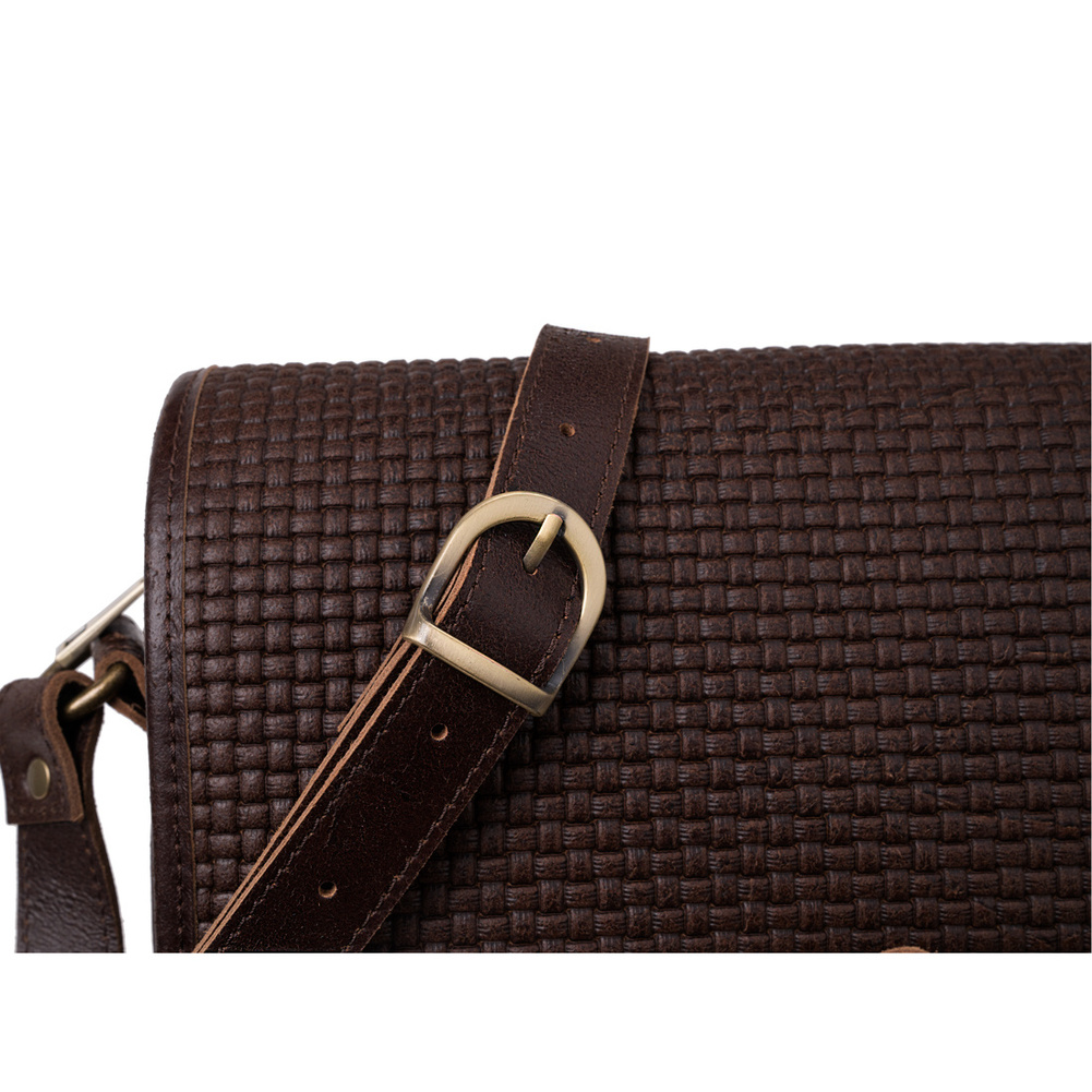 Torebka wykonana została z naturalnej skóry vintage, która wyróżnia się wyjątkowym charakterem i eleganckim wykończeniem. Jej klapka z tłoczeniem imitującym plecionkę dodaje całości unikalnego uroku, przyciągając spojrzenia. Każdy egzemplarz jest jedyny w swoim rodzaju, dzięki starannej selekcji materiałów i precyzyjnemu rzemiosłu. To dodatek, który z czasem zyskuje jeszcze więcej klasy, stając się niezastąpionym elementem Twojej garderoby.
