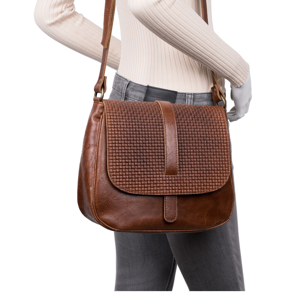 Ta torebka zachwyca nie tylko jakością, ale także detalami. Klapka ozdobiona tłoczeniem w stylu plecionki dodaje jej niepowtarzalnego charakteru i podkreśla wyjątkowy design. To subtelny akcent, który wyróżnia ją na tle innych modeli i przyciąga spojrzenia.
