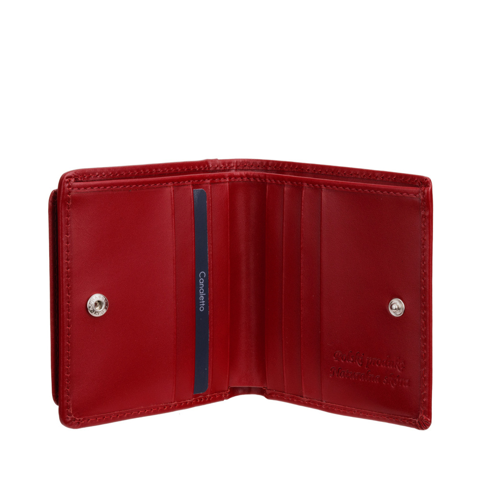 Szukasz stylowego i praktycznego portfela, który zapewni Ci porządek oraz ochronę Twoich danych? Czerwony portfel damski Canaletto wykonany z naturalnej skóry licowej z tłoczonym logo to połączenie klasyki, funkcjonalności i nowoczesnych rozwiązań, takich jak zabezpieczenie RFID, chroniące karty przed kradzieżą danych.