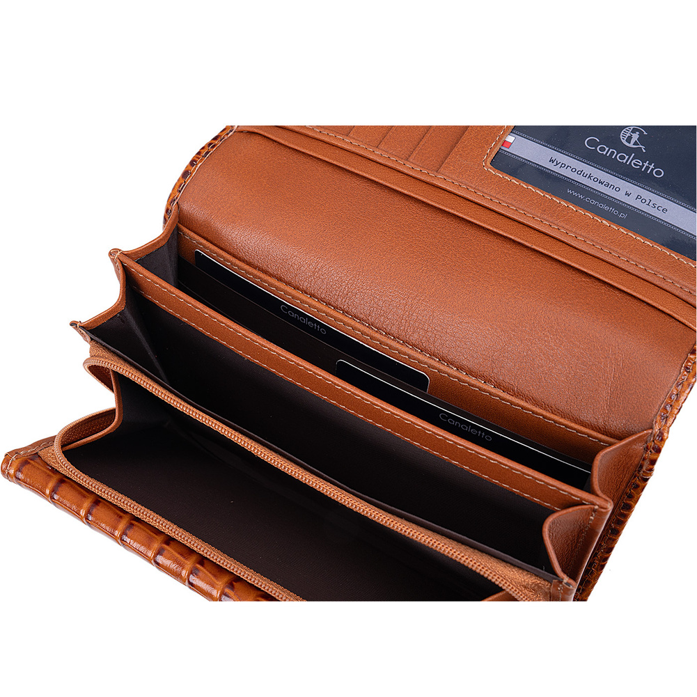 Duży portfel skórzany Canaletto ze wzorem krokodyla to doskonały wybór dla kobiet, które cenią sobie klasę, trwałość oraz ochronę danych dzięki technologii RFID. Wykonany z naturalnej skóry licowej o wyrazistym wzorze krokodyla, zachwyca nie tylko swoim wyglądem, ale również przemyślaną konstrukcją i zaawansowanymi rozwiązaniami technologicznymi.
