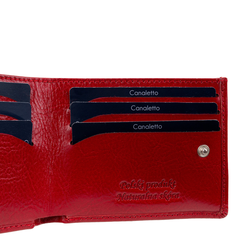 Czerwony portfel damski Canaletto to idealny wybór dla osób ceniących minimalistyczny design, doskonałą jakość wykonania i funkcjonalność. Wykonany z naturalnej skóry licowej, zachwyca swoim intensywnym kolorem, który dodaje energii każdej stylizacji, a jednocześnie zapewnia trwałość i niezawodność na co dzień.