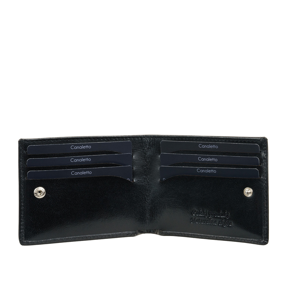 • Stylowy czarny portfel Canaletto wykonany z wysokiej jakości naturalnej skóry. Kompaktowy, minimalistyczny design, 6–12 przegródek na karty, przegroda na banknoty i kieszeń na monety. Ręczna produkcja w Polsce.