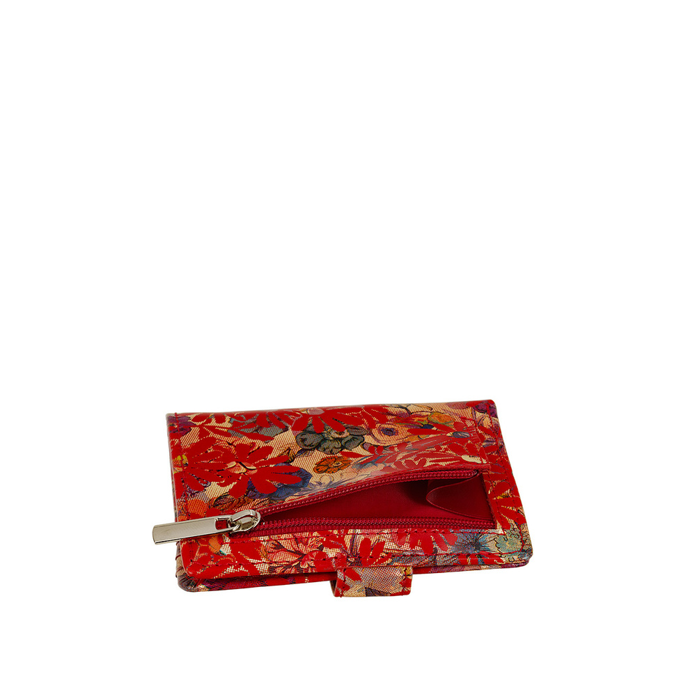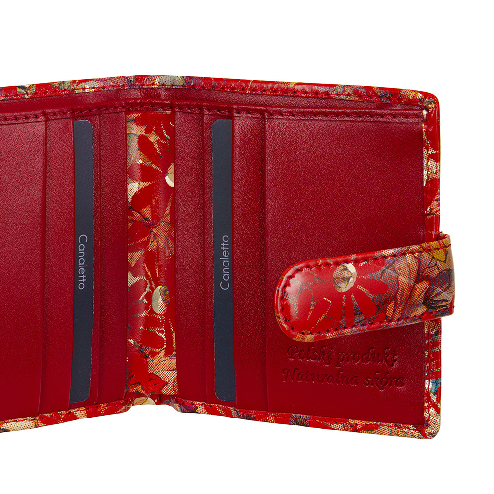 Portfel wykonany jest z naturalnej skóry licowej w wyjątkowym, kolorowym wykończeniu, które dodaje mu oryginalności i radości. Każdy egzemplarz zachwyca żywymi barwami, podkreślając indywidualny charakter jego właścicielki. Skóra licowa jest niezwykle trwała, odporna na codzienne użytkowanie i z czasem nabiera jeszcze bardziej szlachetnego wyglądu.