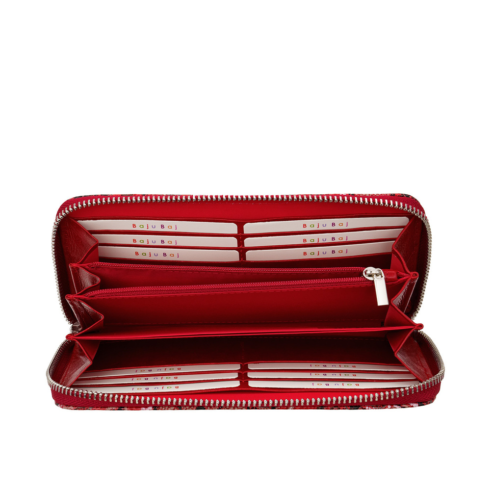Portfel zapinany jest na solidny zamek błyskawiczny, który chroni jego zawartość, zapewniając bezpieczeństwo i wygodę użytkowania. W środku znajdziesz: