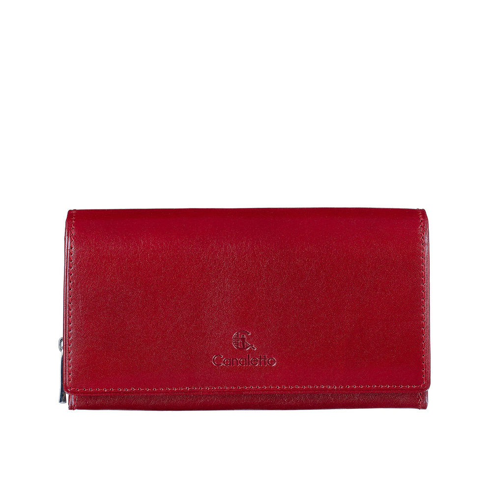 Czerwony damski portfel skórzany Canaletto z tłoczonym logo – elegancja, funkcjonalność i bezpieczeństwo RFID