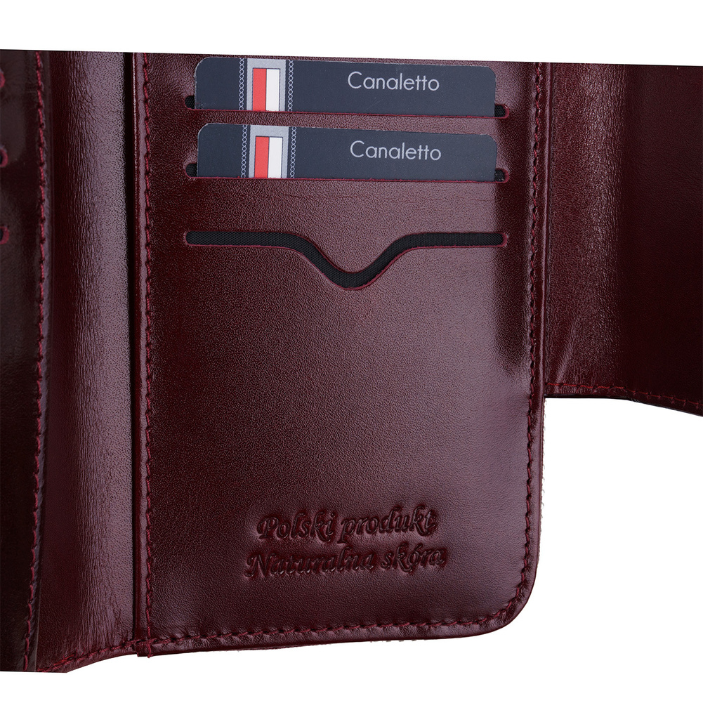 Damski portfel Canaletto z bordowej lakierowanej skóry – elegancja, styl i funkcjonalność