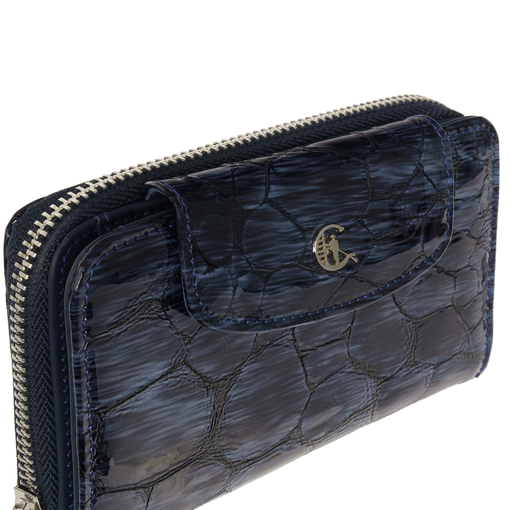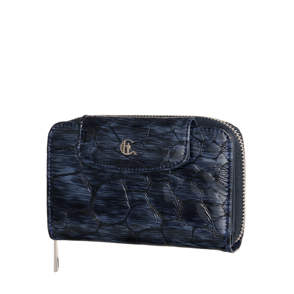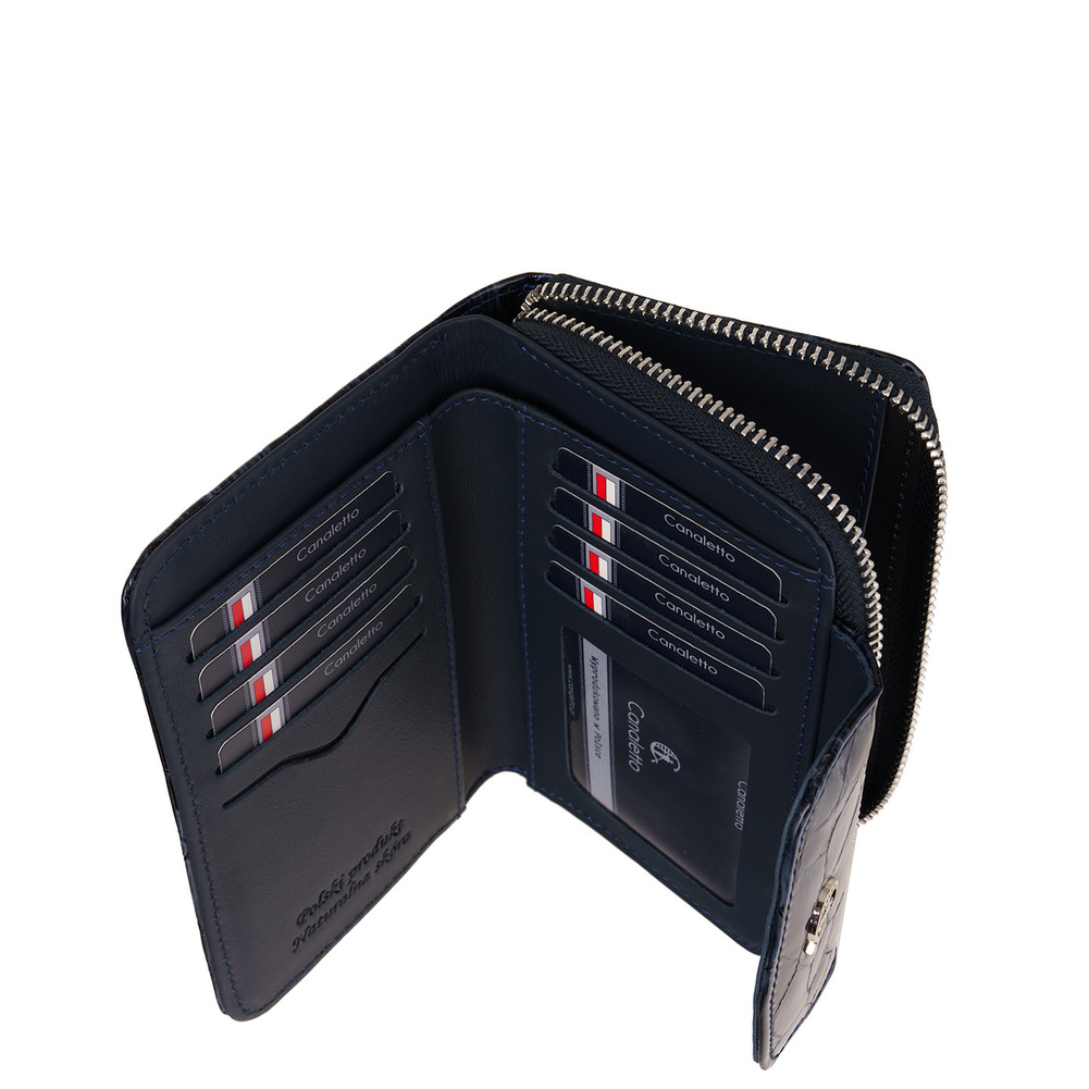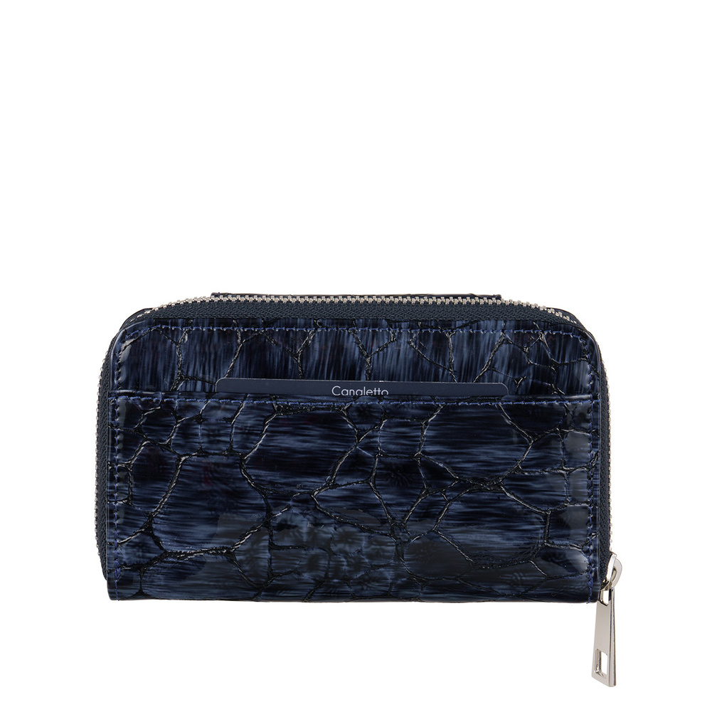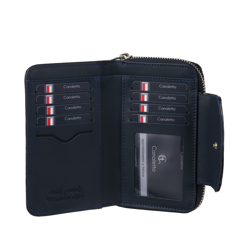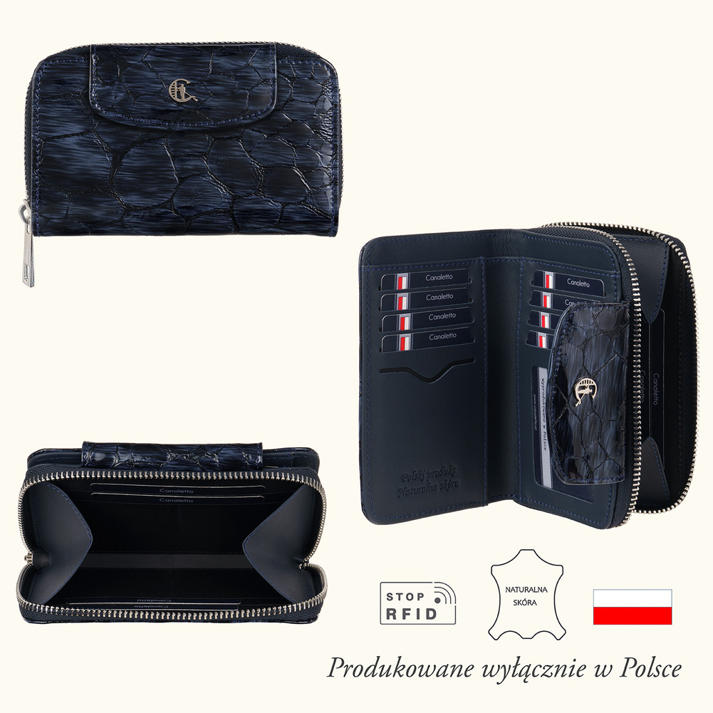 Damski portfel skórzany Canaletto – granatowa skóra lakierowana z zabezpieczeniem RFID