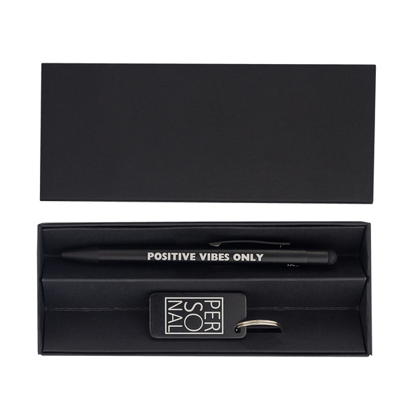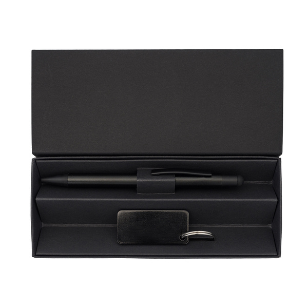 Zestaw promocyjny składający się z długopisu i breloczka wykonanych z aluminium pochodzącego z recyklingu.