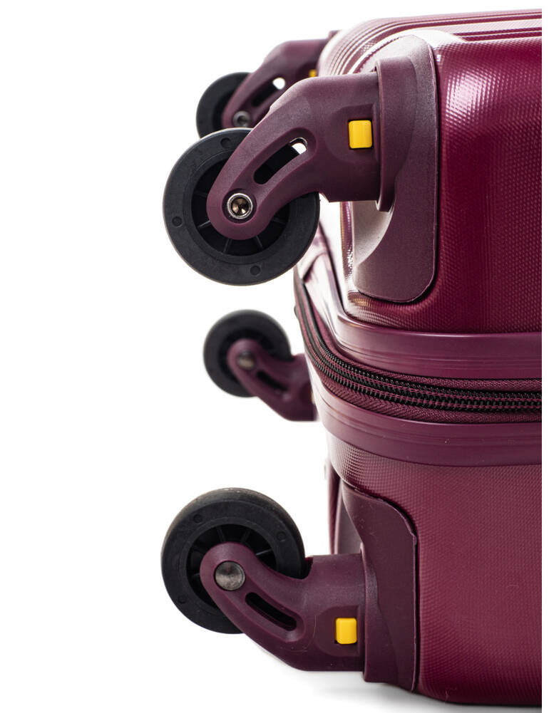 Komfortu w podróżowaniu zapewniają również cztery, obrotowe, kauczukowe kółka, które ułatwiają sunięcie walizki nawet po nierównym podłożu.