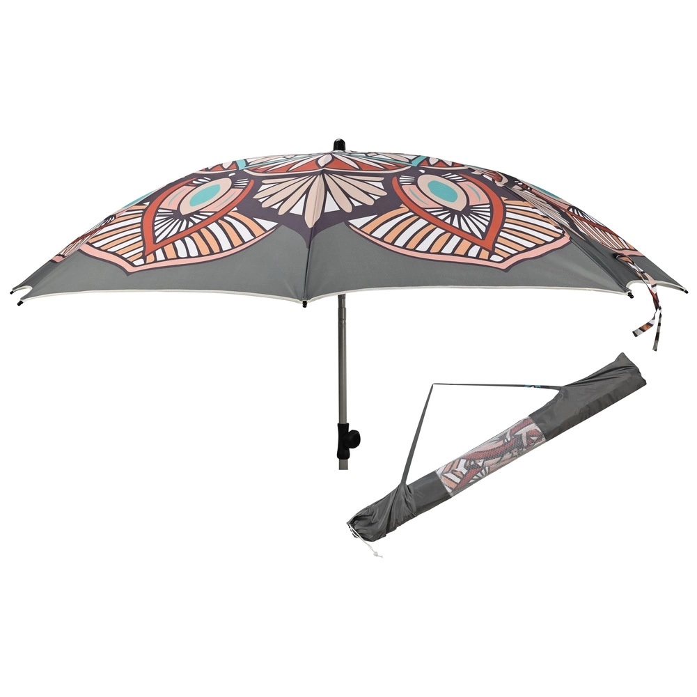 - Wytrzymała i solidna konstrukcja - Wykonany z wysokiej jakości materiałów, parasol posiada solidny stelaż wykonany z metalu w kolorze szarym. Czasza wykonana z poliestru w szarym kolorze z efektownym, kolorowym nadrukiem mandali.
