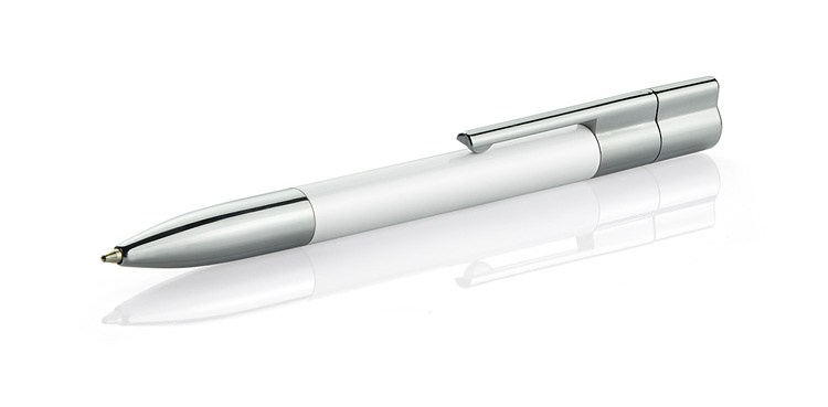 Wykonany z aluminium gustowny długopis wyposażony został w przenośną pamięć USB o pojemności 8 GB.