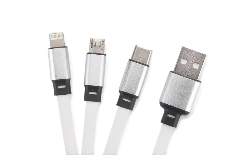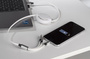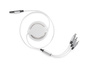 Wyposażony w trzy końcówki do ładowania różnych urządzeń: USB typu C, Lightning (iPhone) i micro USB.