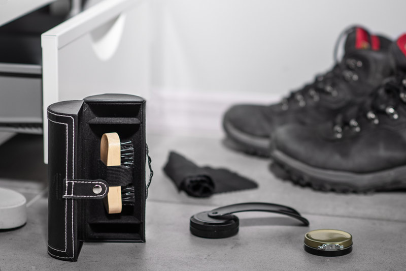 Zestaw do czyszczenia obuwia SHINBO wykonany z ekoskóry PU.
