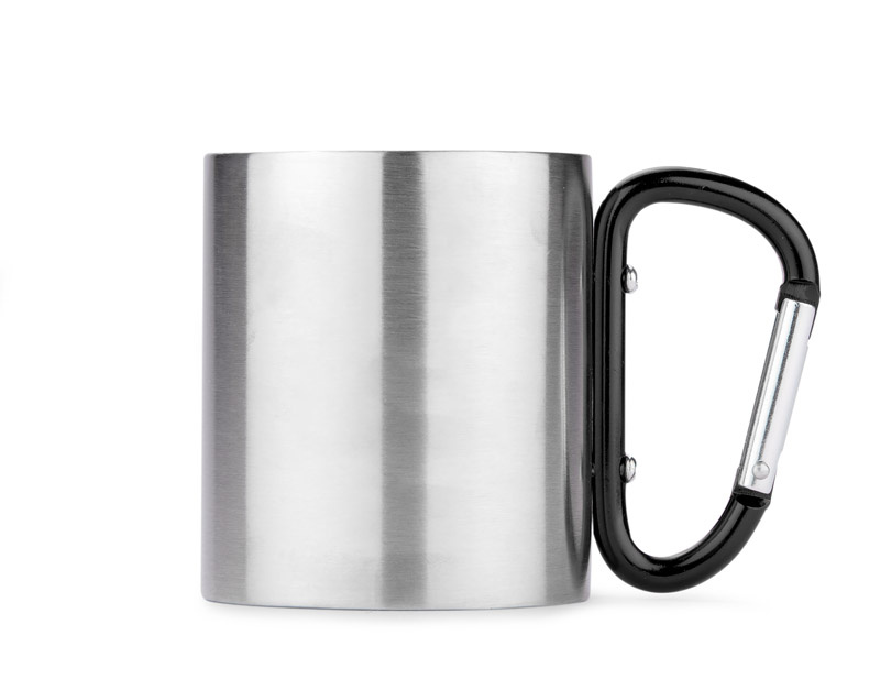 Ucho w formie karabińczyka pozwala na szybkie i łatwe zamontowanie kubka do plecaka.