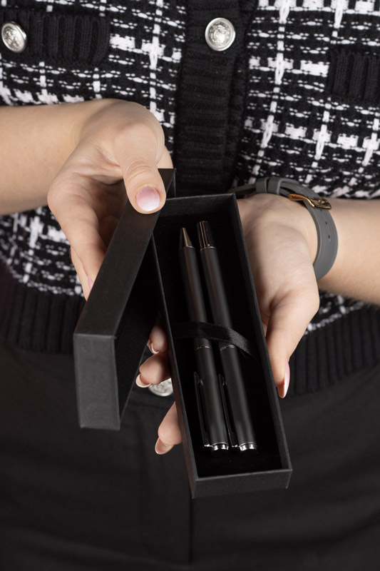 Wymiary (mm): | 140 x ⌀ 10 (długopis); 143 x ⌀ 10 (pióro kulkowe); 180 x 55 x 24 (pudełko) |