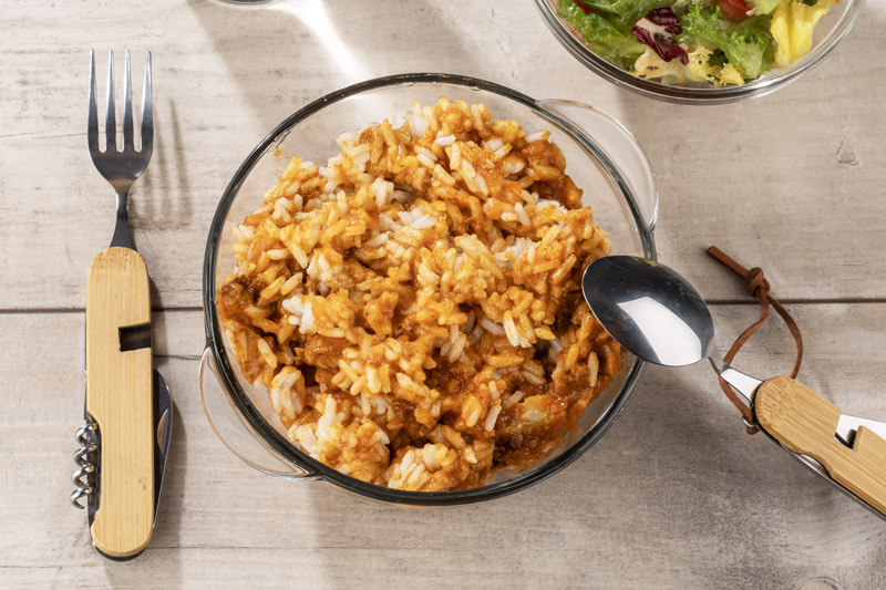 Dzięki dołączonemu rzemykowi sztućce można wygodnie przypiąć do plecaka lub paska.
