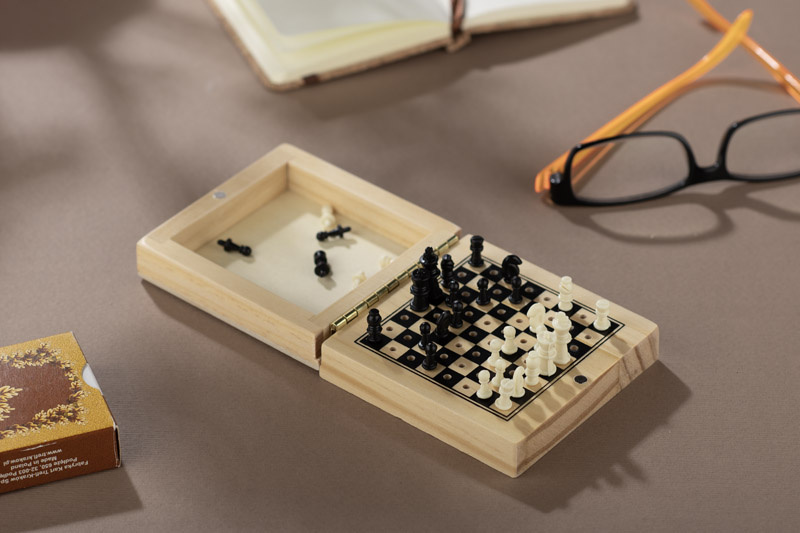 Szachy drewniane ILDE wyposażone są w wtykane pionki, które zapewniają stabilność podczas transportu, eliminując ryzyko ich wypadania.