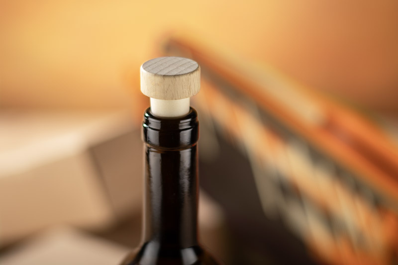 Korek do wina LIORA to funkcjonalny gadżet reklamowy wykonany z drewna i materiału syntetycznego.