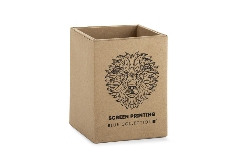 Przybornik na biurko KOS to funkcjonalny gadżet reklamowy wykonany z papieru kraftowego.