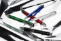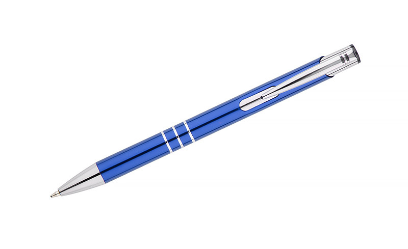 Ten automatyczny długopis z trzema stylowymi ringami i niebieskim wkładem, łączy nowoczesny design z funkcjonalnością.