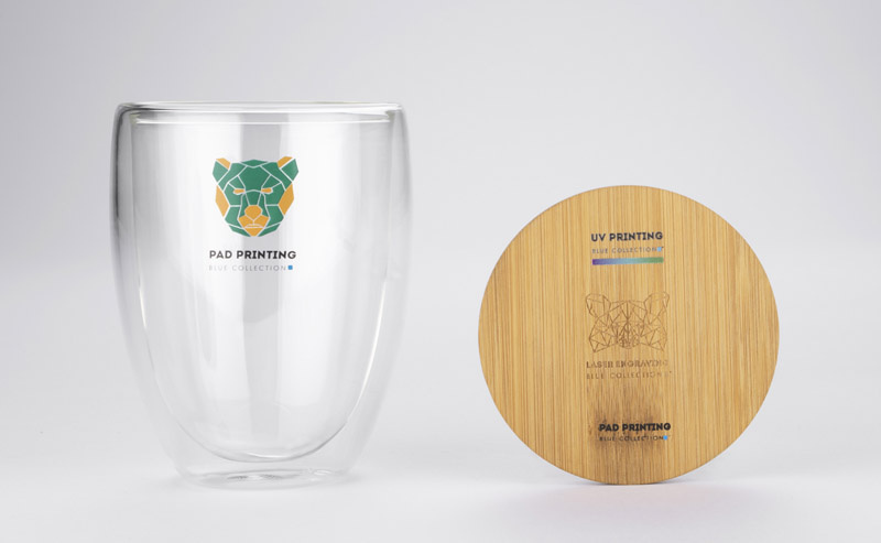 Posiada dwie ścianki, dzięki czemu dłużej zachowuje temperaturę napoju oraz przykrywkę wykonaną z bambusa.