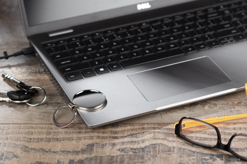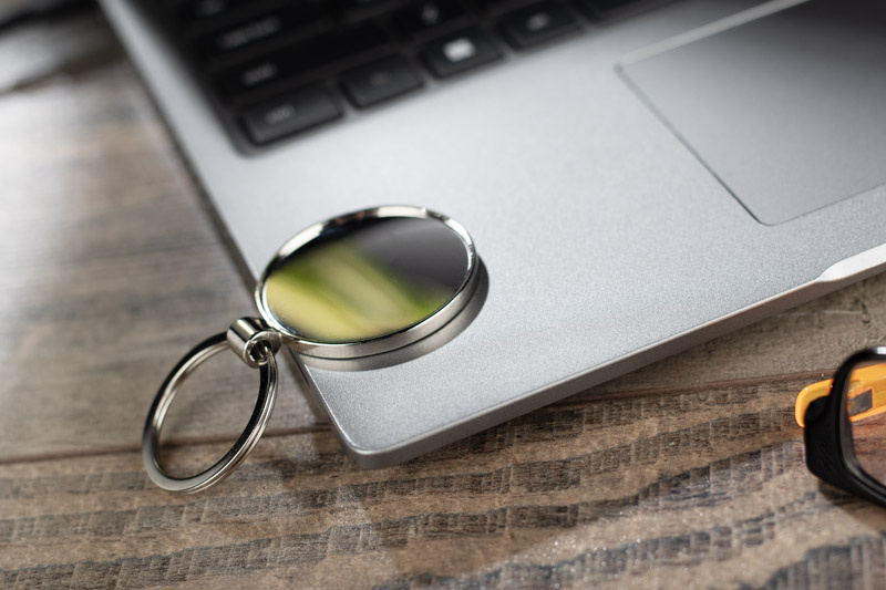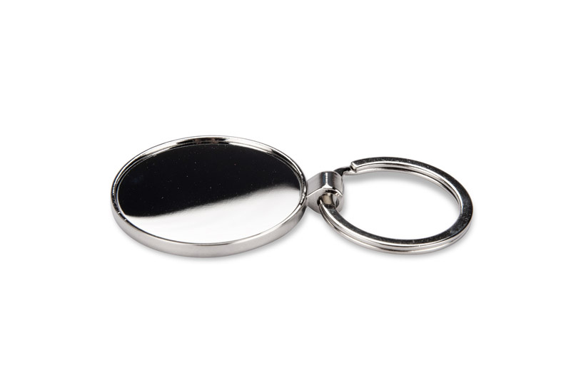 DOMIO to okrągły brelok wykonany z wysokiej jakości metalu, zaprojektowany z myślą o usłudze znakowania metodą doming.