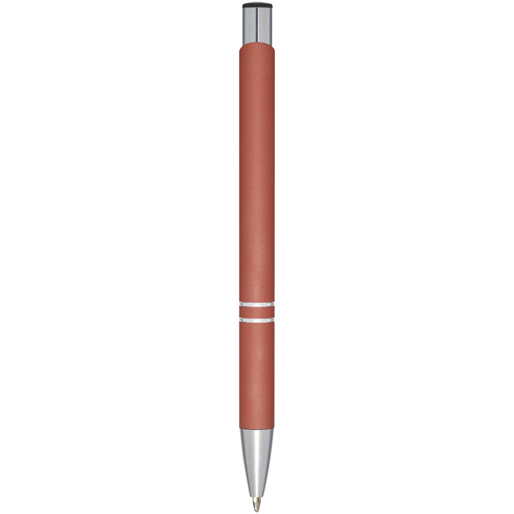 Gumowa powłoka sprawia, że długopis jest miękki w dotyku, a po wygrawerowaniu laserem ukazuje się srebrna warstwa spodnia.