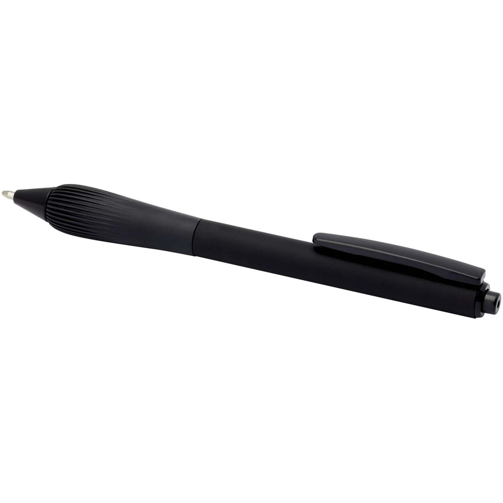 Długopis z tworzyw sztucznych pochodzących z recyklingu, z gumowanym korpusem i uchwytem wykonanym z TPR.