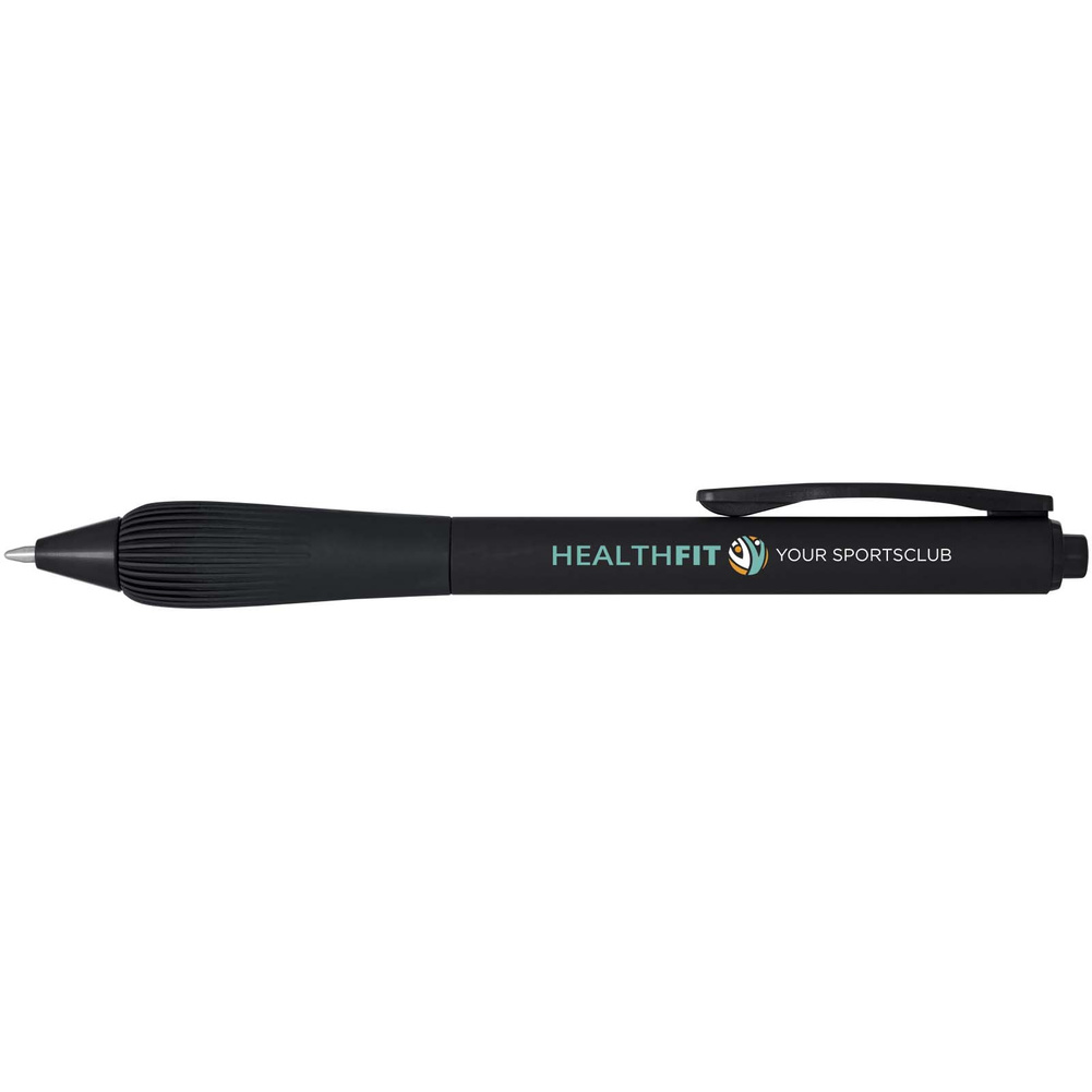 Długopis z tworzyw sztucznych pochodzących z recyklingu, z gumowanym korpusem i uchwytem wykonanym z TPR.
