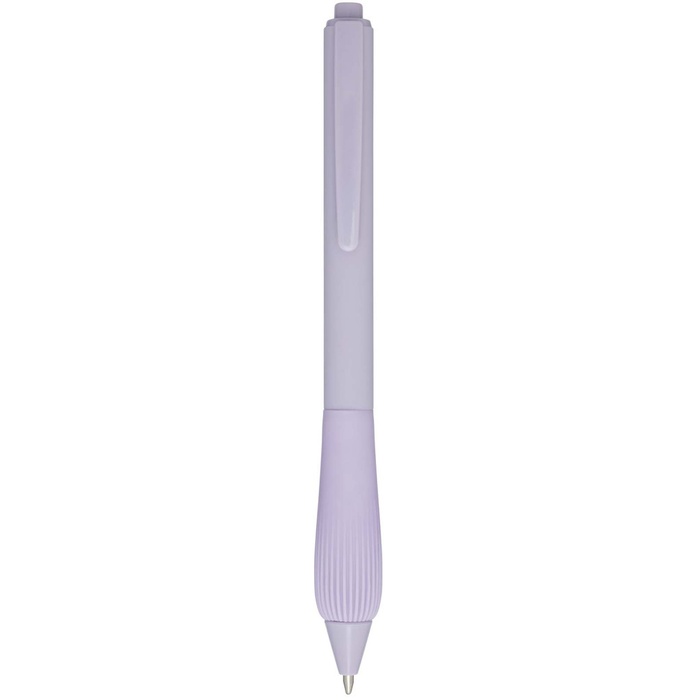 Długopis z tworzyw sztucznych pochodzących z recyklingu, z gumowanym korpusem i uchwytem wykonanym z TPR.
