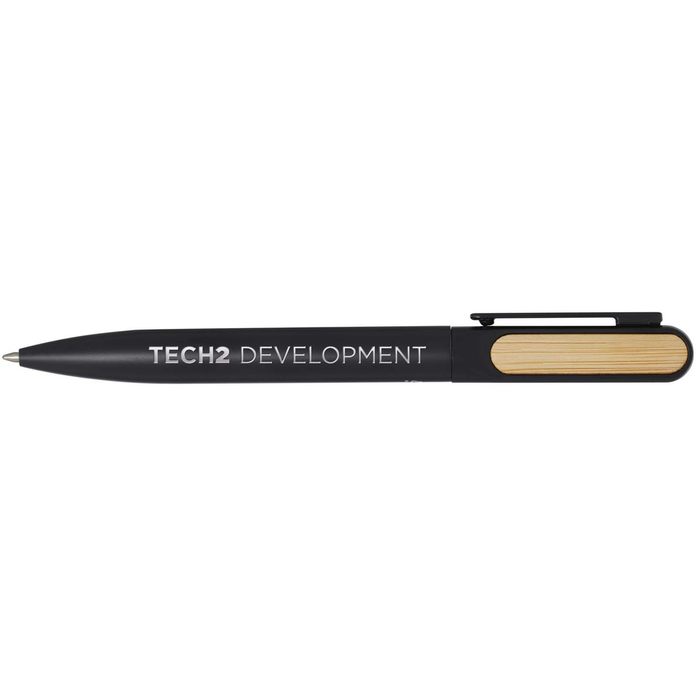 Blanca długopis o górnej części korpusu wykonanej z tworzyw sztucznych pochodzących z recyklingu pokryty kolorową powłoką natryskową z bambusowymi akcesoriami po
