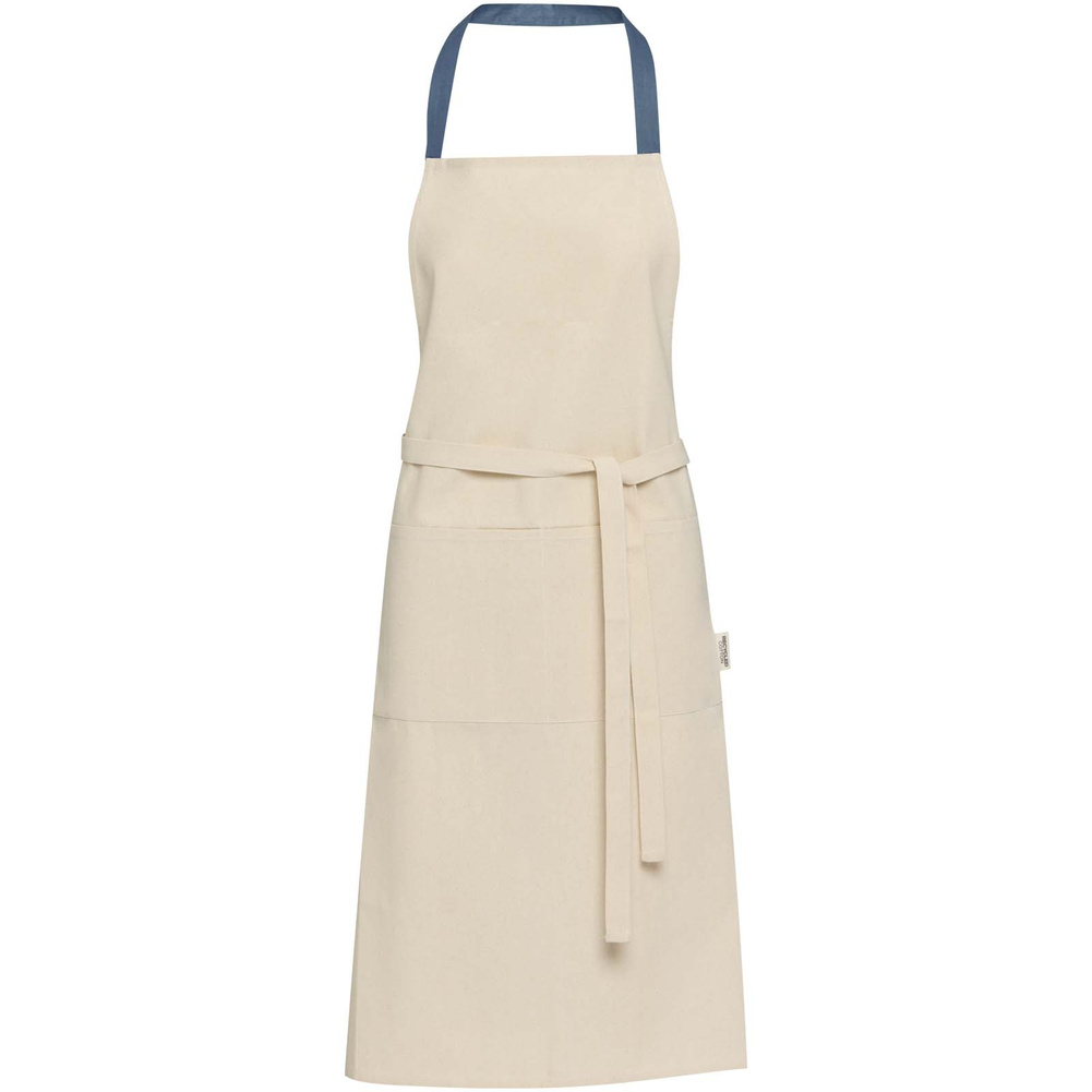 Nia fartuch wykonany w 100% z bawełny pochodzącej z recyklingu o gramaturze 200 g/m² z certyfikatem GRS.