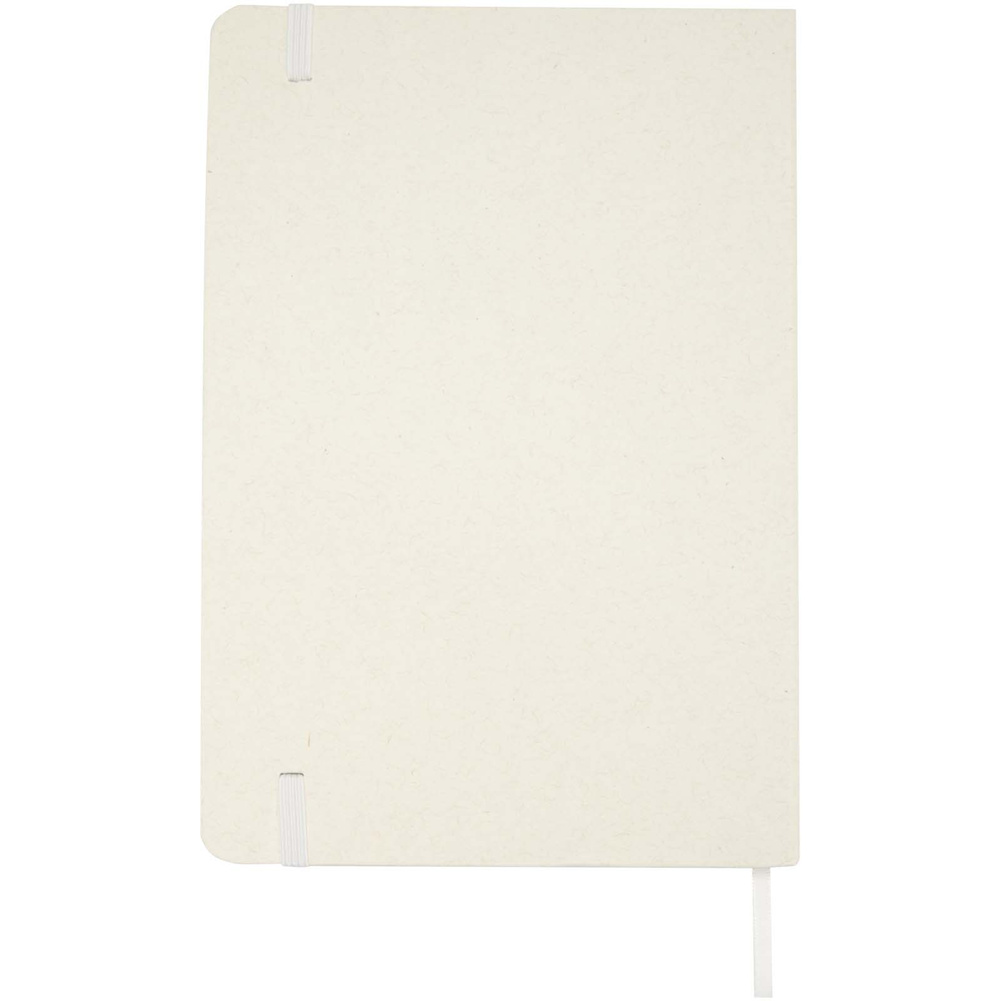 Notatnik Bass A5 w twardej okładce zawiera 80 papierowych kartek w linie o gramaturze 80 g/m2 i jest wykonany z przetworzonych kartonów na mleko.