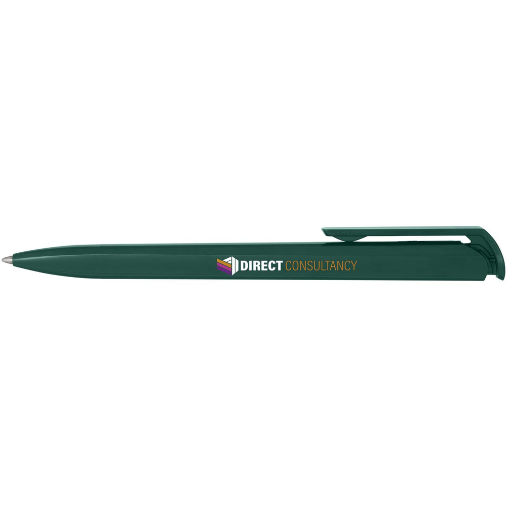 Długopis z korpusem i klipsem wykonanymi z tworzyw sztucznych pochodzących z recyklingu oraz końcówką ze stali nierdzewnej.