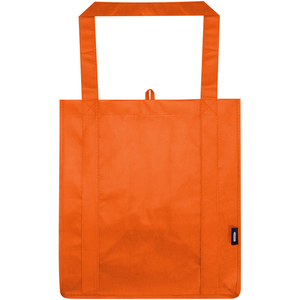 Wykonana z trwałej i odpornej na rozdarcia włókniny RPET z recyklingu z certyfikatem GRS torba na zakupy Liberty ma sztywne dno, dzięki czemu jest uniwersalna i solidna. Torba posiada dużą komorę główną i uchwyty o długości 25 cm. Pojemność: 29 litrów. Wytrzymałość do 12 kg.